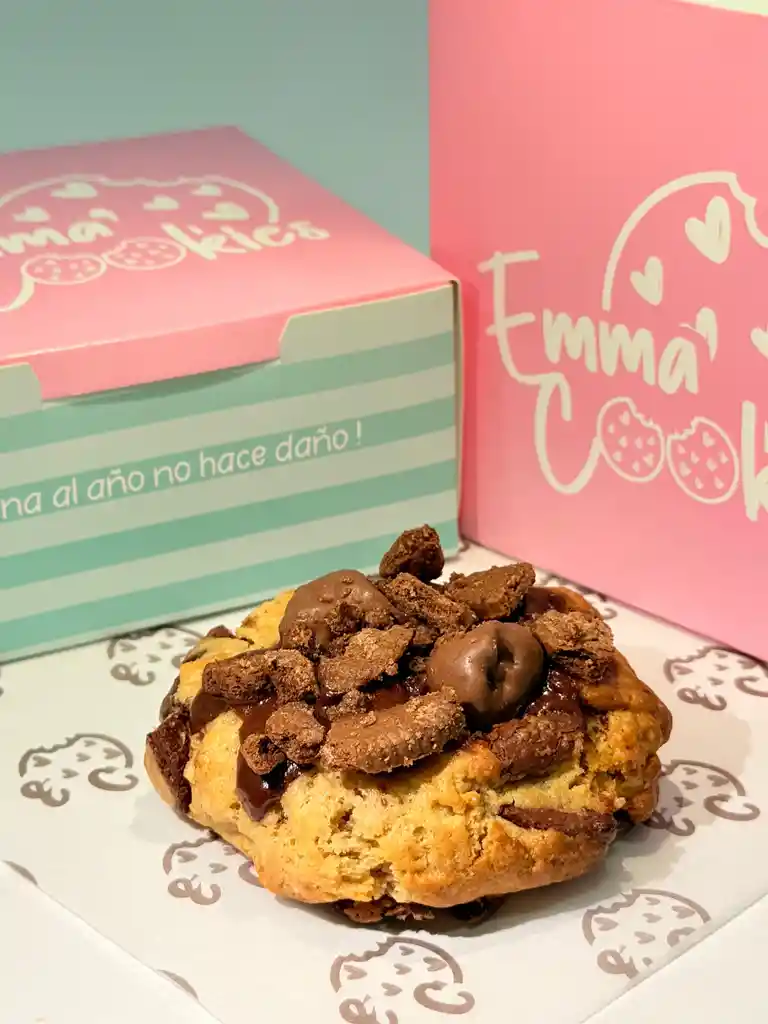 Galleta de vainilla con chips de chocolate, rellena con crema crocante de Milo y cubierta con galleta triturada de milo y nuggets de milo. Pura energía y sabor.