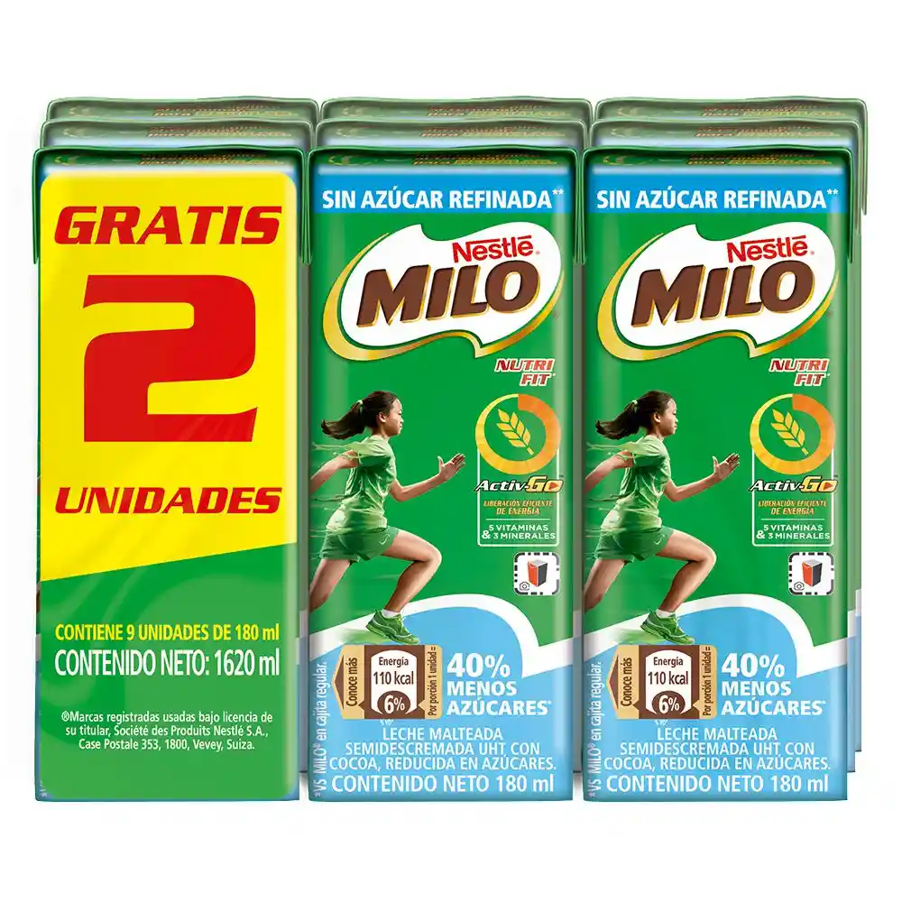 Leche achocolatada a base de malta y cocoa con vitaminas y minerales. Contiene 6 vitaminas y 3 minerales, que aporta nutrientes para la liberación de energías y el funcionamiento de músculos y huesos.