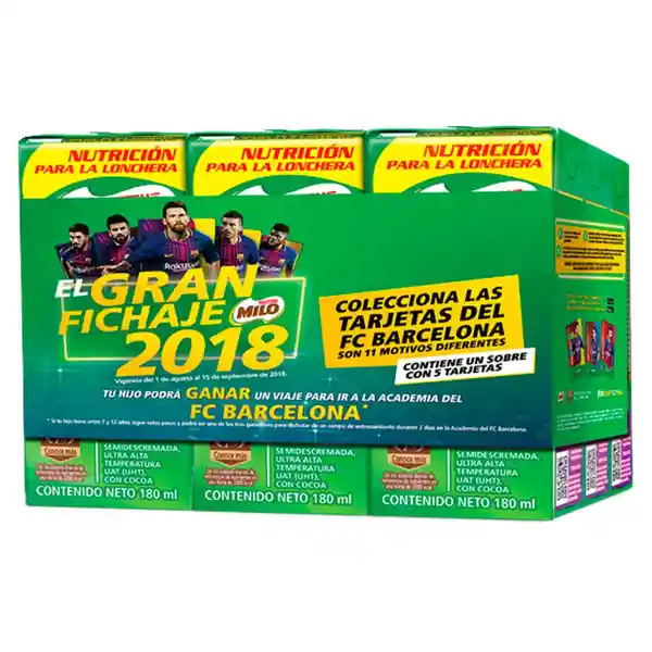 Contiene 11 Unidades. Leche Achocolatada 6 Und de 180 mL c/u + Tarjetas Del FC Barcelona 5 Und.