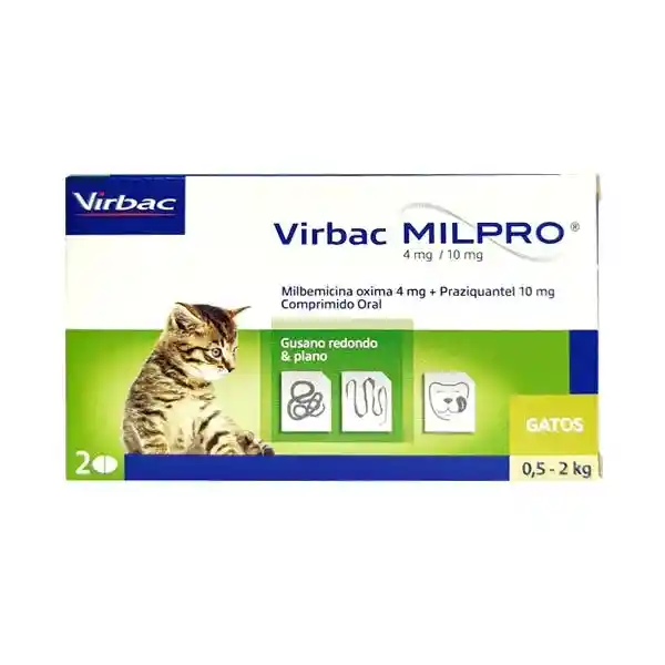 Es un desparasitante interno de amplio espectro diseñado especialmente para gatos que pesan más de 2 kg. Este producto combina dos potentes ingredientes activos, milbemicina oxima y praziquantel, que trabajan en conjunto para combatir tanto cestodos como nematodos, incluyendo la prevención contra el gusano del corazón. Es importante destacar que Milpro es fácil de administrar debido a su formato palatable y puede ser administrado con algo de comida para facilitar la ingestión.