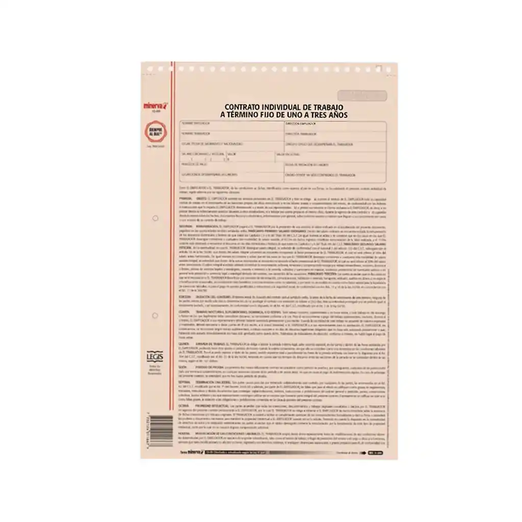 Formato legal de contrato laboral a término fijo, conforme a la legislación colombiana. Incluye cláusulas claras sobre funciones, condiciones, derechos y deberes del empleador y trabajador.