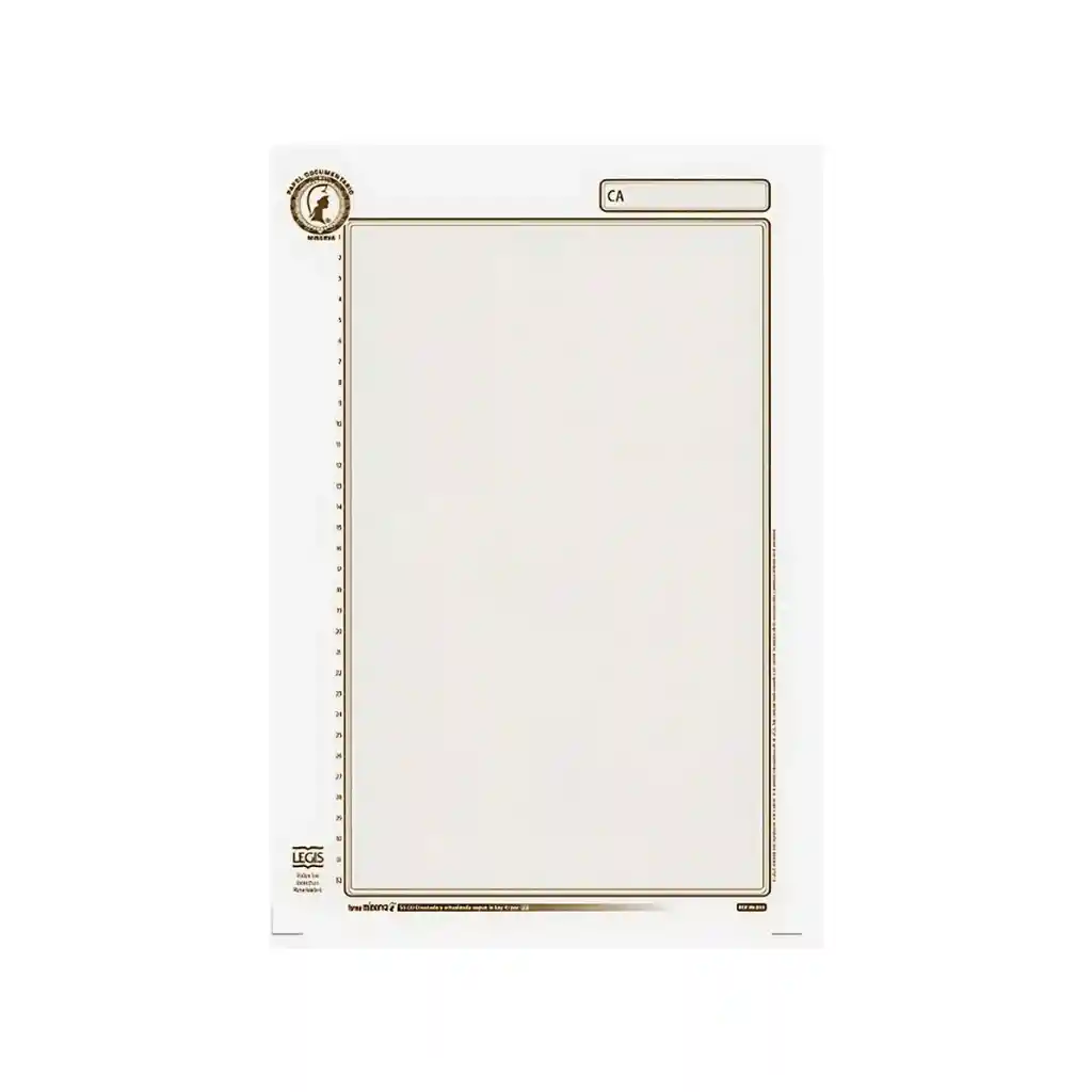 Hoja de papel de seguridad ideal para documentos legales y notariales. Ofrece autenticidad y protección contra falsificación. Perfecto para escrituras, actas, poderes y trámites jurídicos.