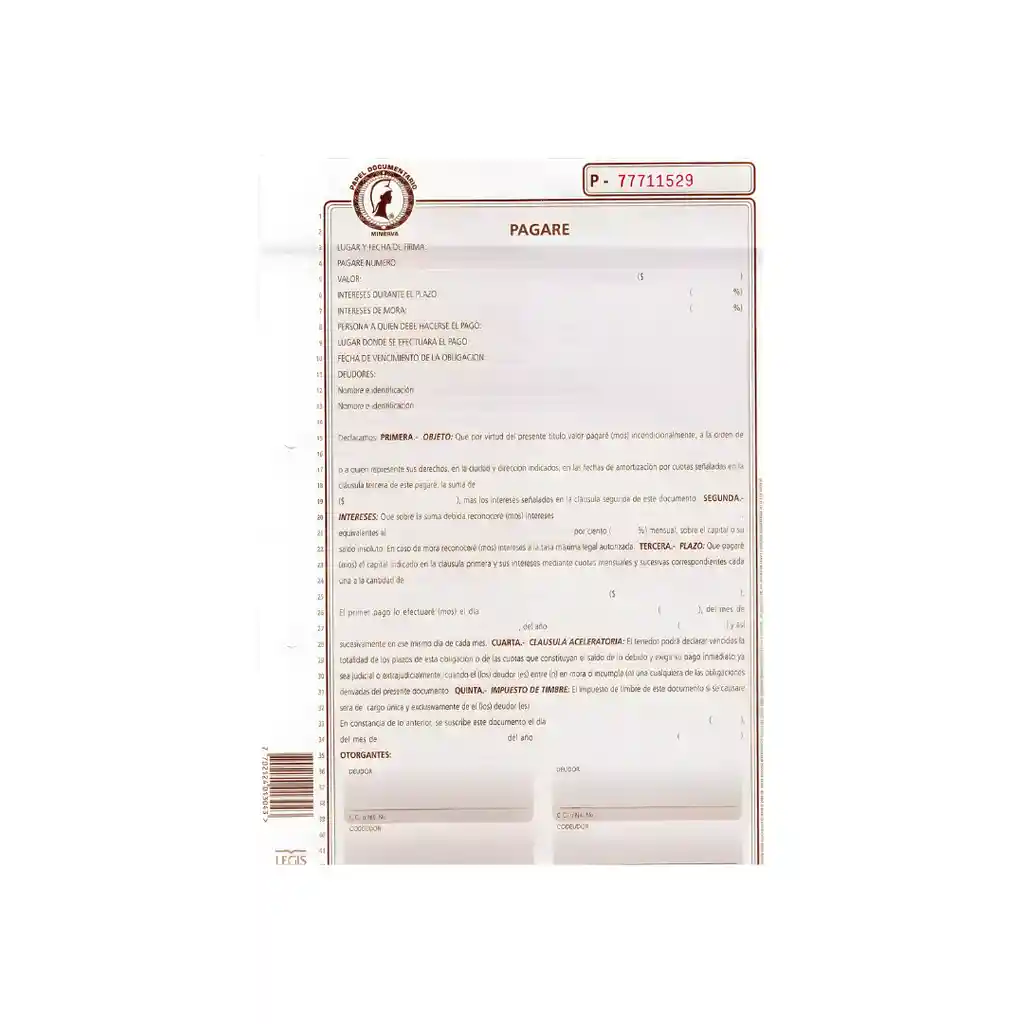Formulario legal tipo pagaré en papel de seguridad. Ideal para créditos, préstamos personales o empresariales y acuerdos comerciales. Garantiza respaldo jurídico y claridad en las condiciones de pago.