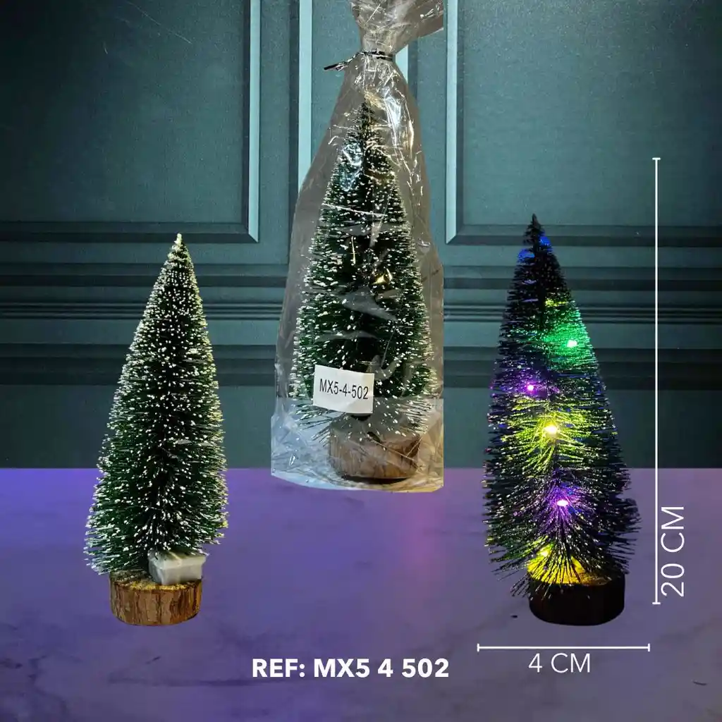 *💥 MINI ÁRBOL DE NAVIDAD VERDE NEVADO DECORATIVO CON LUZ LED MX5 4 502 💥* *• FUNCIÓN:* Decoración navideña para el hogar, oficina, tiendas, o como parte de un centro de mesa, aportando un toque invernal y festivo. La versión con luces LED añade un brillo adicional. *• CARACTERÍSTICAS:* • Diseño: Árbol pequeño y cónico con "ramas" de escobilla/fibra, con un efecto de nieve o escarcha espolvoreada sobre el follaje verde. • Color: Verde con detalles blancos. • Base: Base de madera o plástico de color oscuro para estabilidad. • Variantes: • Sin luces: Para una decoración sencilla y clásica. • Con luces LED: Incluye pequeñas luces LED que iluminan el árbol con colores cambiantes (como se ve en la imagen, tonos verdes, morados, amarillos), funcionando con baterías (no visibles). • Portabilidad: Su tamaño compacto lo hace fácil de colocar en cualquier superficie. *• MEDIDAS:* 20 CM de alto x 4 CM de diámetro en la base.