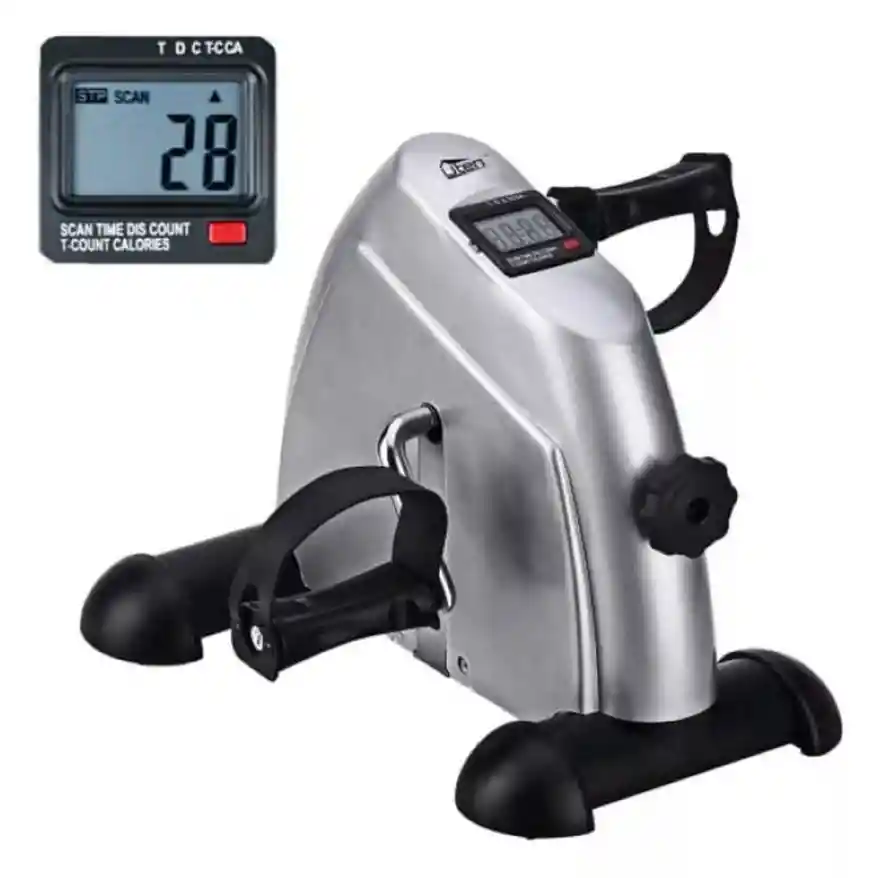Mini Bicicleta Estatica Ejercitador Pedal Portatil. CARACTERISTICAS: * Mini bicicleta ejercitadora de pedales para pierna/brazo. * Plegable con pantalla LCD para el hogar y la oficina. * Tensión ajustable la perilla de tensión para controlar el nivel de resistencia e intensidad. * Ejercitador de pedal de alta calidad. * Se puede transportar y almacenar fácilmente en cualquier lugar. DESCRIPCION: - Ejercitador de piernas y brazos: esta mini bicicleta estática está diseñada para ejercicios de ciclismo de piernas y brazos, ejercicios de recuperación de rodillas y hombros después de la cirugía, fortalecer los músculos de brazos y piernas. - Mini Bicicleta estática con pedal inteligente: coloca tu pedalero debajo de tu escritorio mientras trabajas. Juega un juego en línea, lee un libro, mira una película o chatea con un amigo mientras haces tu entrenamiento. El ejercicio puede ser agradable. - Tensión ajustable: ajusta la perilla de tensión para controlar el nivel de resistencia e intensidad de entrenamiento, el movimiento del pedal es suave y muy fácil incluso para las personas mayores. - Monitor LCD: el monitor LCD muestra el tiempo de ejercicio, cuenta, rpm, calorías y escaneo, muy fácilmente para organizar tu ejercicio. Mecanismo de plegado rápido: esta bicicleta estática plegable se puede plegar y desplegar rápidamente, compacta, ligera, fácil de almacenar o llevar sobre la marcha. - Ejercitador de pedal de alta calidad: Está hecho de tubos de acero reforzado y plástico ABS, y la manivela está envuelta en espuma aislante del calor, es seguro y estable de usar, y lo suficientemente firme para un uso a largo plazo. NOTA: EL PRODUCTO PUEDE LLEGAR EN COLOR SILVER O NEGRO DE ACUERDO A DISPONIBILIDAD EN INVENTARIO. ESPECIFICACIONES: * Material: Hierro/Plástico * Dimensiones: - Altura: 29 cm - Ancho: 36 cm - Largo: 48 cm * Peso: 2.495 kg