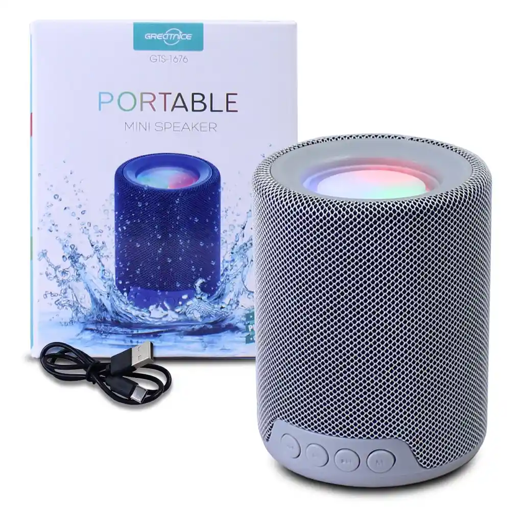 Bocina Bluetooth con Luz LED. La luz LED, ideales para cualquier ocasión, fácil de transportar, se conecta vía Bluetooth a diferentes dispositivos como computadores, smartphones, etc. En la parte superior se encuentran la luz LED, en la parte de atrás entradas USB, micro SD y entrada para la carga de la bocina, así como el control de encendido y apagado, tiene Radio FM. Al encenderse las luces LED cambian de color, en la parte frontal de la bocina se encuentran los controles de cambio de estación y volumen, modo. Es recargable e incluye cable de carga tipo C. Con correa para su fácil transporte.