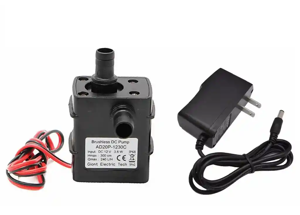 Mini Bomba de Agua Sumergible Impermeable DC Ultra silencioso 12 V 4.2 W 240L/H Caudal Bomba Sin Escobillas QR30E Mas adaptador fuente de alimentacion de 12VDC para conectar directamente a 110v características: H Max....300cm....Altura Maxima 100% A Estrenar y alta calidad! sin escobillas, rotor magnético permanente. súper larga vida útil (más de 30000 horas). bajo consumo y bajo nivel de ruido. eje de cerámica de alto rendimiento. diseño anfibio, instalación sumergible y totalmente resistente al agua. con los ejes se incluye con el lacre estático, no dinámico, que puede evitar problemas de fugas. especificaciones: tamaño: 54 (L) x37 (W) x42 (H) mm Voltaje : DC12V Corriente nominal: MA Consumo de energía: 4.2 W Caudal: 240L/H Material: de plástico diámetro de entrada: 8mm diámetro de salida: 8mm Vida Útil de trabajo: 20000 horas ruido: = 40DB A Prueba De agua: IP68 Resistencia Al calor: 0-50 ° Longitud del cable: 45 CM Color: negro el paquete incluye: 1 x Mini Bomba de Agua 1 xAdaptador Fuente de alimentacion 12VDC a 110v 1 x en forma de U accesorios Se revisa y prueba antes de enviar