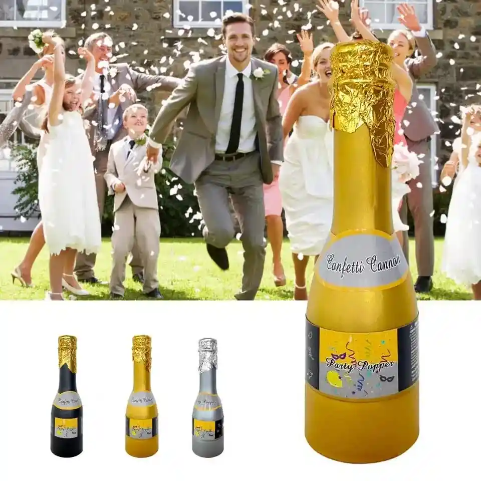 Mini botella divertida de papel de aluminio dorado, 16 cm pulgadas (1 unidad), versátil y elegante, perfecto para fiestas, celebraciones y eventos especiales Cañon lanza confeti