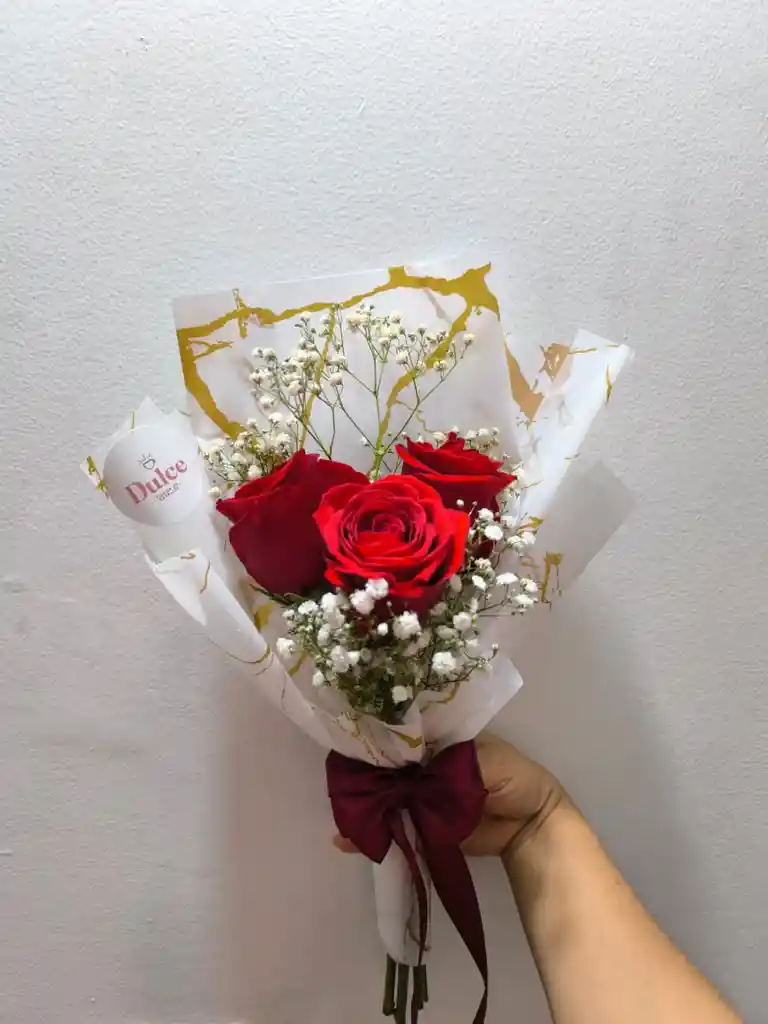 Hermoso Bouquet pequeño con 3 rosas y velo de novia, decoracion y tarjeta.