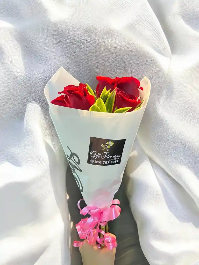 Mini bouquet de 6 rosas rojas con follaje. Nota: La flor puede ser sustituida dependiendo la disponibilidad de color y del producto “Mensaje Personalizado” máximo de 30 caracteres (Dejar el mensaje en el chat, los comentarios no se previsualizan para la tienda por lo que si se dejan allí no podrá ser incluido).