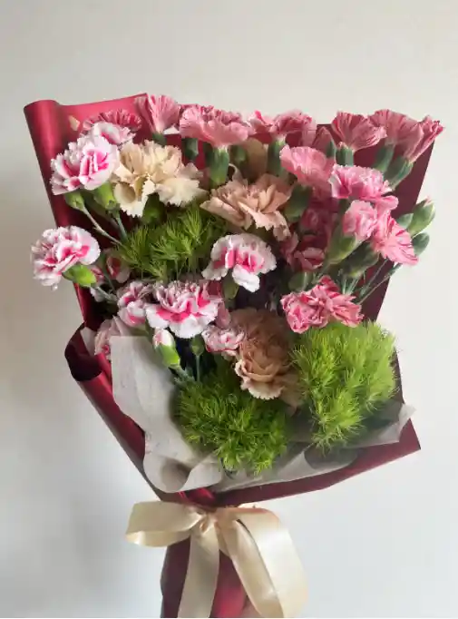 6 claveles + 5 solomíos + 5 mini claveles + 3 greenball