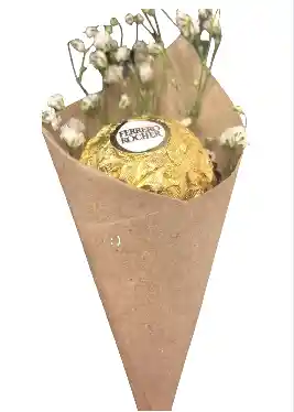 Mini bouquet Ferrero Rocher x 1 y gypso, con envoltura ecológica. Ideal para recordatorios y/o detalles empresariales. Perfecto para regalos, detalles, aniversarios, cumpleaños y fechas especiales