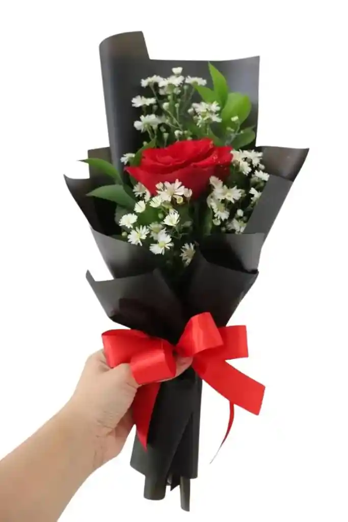 Unidad de rosa roja con gypso y rusco Una clásica rosa roja que representa amor y pasión, ideal para un gesto romántico. Nota: La flor puede ser sustituida dependiendo de la disponibilidad de color y del producto. "Mensaje Personalizado" máximo de 30 caracteres (Dejar el mensaje en el chat, los comentarios no se previsualizan para la tienda, por lo que si se dejan allí no podrá ser incluido).