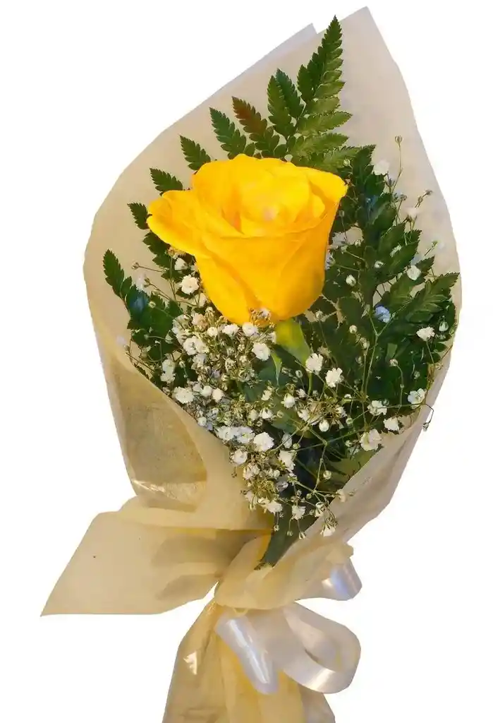 Unidad de rosa amarilla Una rosa amarilla que simboliza amistad y felicidad, perfecta para alegrar el día de alguien especial. Nota: La flor puede ser sustituida dependiendo de la disponibilidad de color y del producto. "Mensaje Personalizado" máximo de 30 caracteres (Dejar el mensaje en el chat, los comentarios no se previsualizan para la tienda, por lo que si se dejan allí no podrá ser incluido).