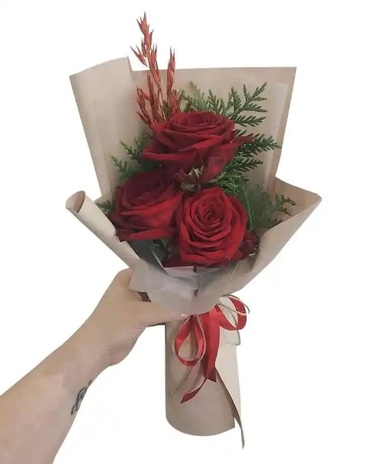 Tres unidades de rosa roja CON HELECHO Tres rosas rojas que simbolizan el amor y la pasión, perfectas para una expresión sincera de sentimientos profundos. Nota: La flor puede ser sustituida dependiendo de la disponibilidad de color y del producto. "Mensaje Personalizado" máximo de 30 caracteres (Dejar el mensaje en el chat, los comentarios no se previsualizan para la tienda, por lo que si se dejan allí no podrá ser incluido).