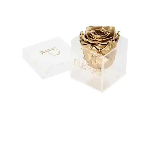 Caja en acrílico con una rosa preservada (duración más de un año)