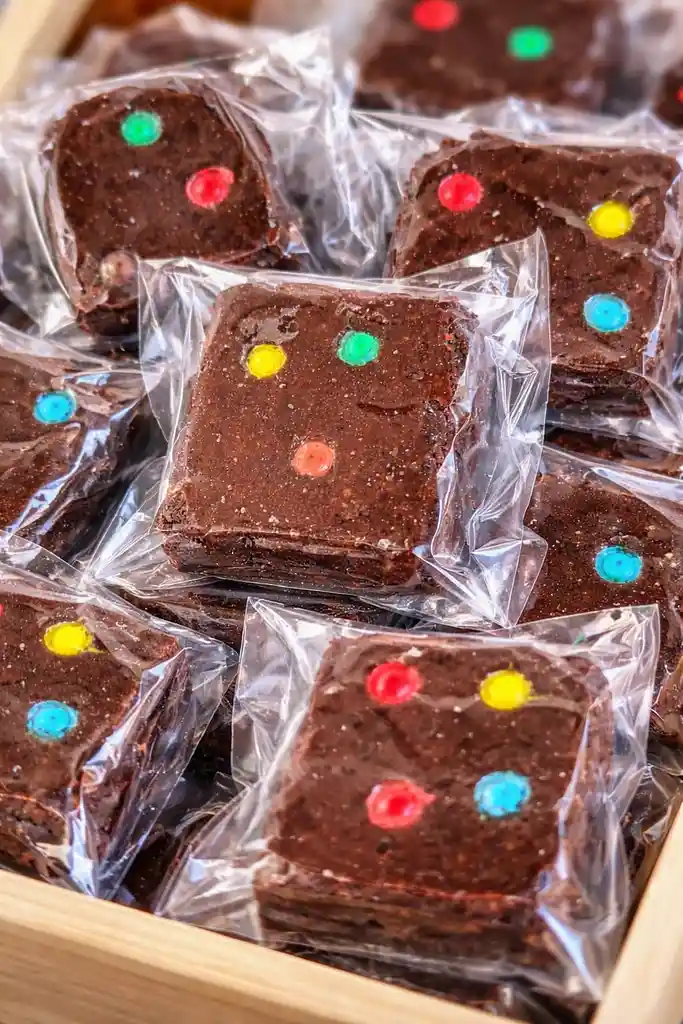 Brownie con Topping de M&M, bajo en azucar No Contiene Huevo , Grasas Saturadas, Ni Lacteos.