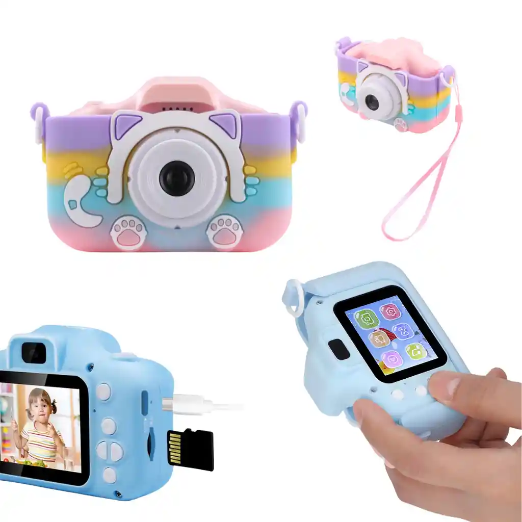 Diseñada especialmente para niños, esta cámara compacta permite capturar momentos inolvidables con una resolución de imagen de 12 Mpx, asegurando que cada sonrisa y aventura quede inmortalizada en alta calidad. Su pantalla de 2 pulgadas facilita la visualización de las fotos, haciendo que cada sesión de fotos sea divertida y accesible. Con la capacidad de grabar videos en formato 720 VGA, los niños pueden crear sus propias historias visuales y compartirlas con amigos y familiares. La cámara es fácil de usar, lo que permite que los más pequeños se sumerjan en el mundo de la fotografía sin complicaciones. Además, su diseño ligero y resistente la hace ideal para llevar a cualquier lugar, ya sea en un día de campo o en una fiesta de cumpleaños. La SQ-XJ01 no solo fomenta la creatividad, sino que también ayuda a desarrollar habilidades motoras y de observación en los niños. Al capturar imágenes y videos, los pequeños aprenderán a ver el mundo desde una nueva perspectiva, estimulando su imaginación y curiosidad. Esta cámara es una excelente herramienta para que los niños se expresen y compartan sus experiencias de manera divertida y educativa. - Incluye 4 Juegos (Snake , Sokoban, Laberinto, Guess) - Almacenamiento : SD Tarjeta ( hasta 32 GB CL10 ) - NO INCLUIDA - USB Puerto : Micro usb 2.0 - Bateria de Li-tio - Menú Idioma :Español , Ingles , Italiano, Chino, Aleman, Portugues - Sistema Operativo Compatible : Windows XP Vista 7 8, Mac10.8 - Tamaño Artículo : 6 cm x 8.5cm x 5 cm La cámara perfecta para que los más pequeños exploren su creatividad y desarrollen habilidades. Con una resolución de hasta 40MP para fotos nítidas y video en 1080p. - 28 marcos de fotos para personalizar sus imágenes - Zoom digital de 12x para detalles más cercanos - Pantalla de 2.0" para una visualización clara - Batería de 200mAh, permite hasta 200 fotos con una carga completa - Carga rápida en solo 60 minutos Contenido: 1 cámara, Diseño ARCOIRIS cable de carga, funda de silicona cuerda