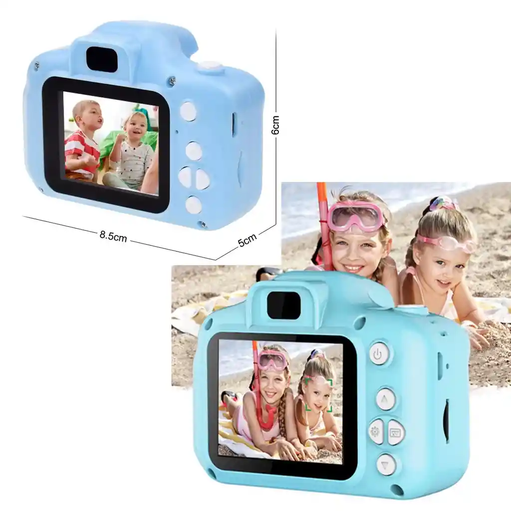 Cámara digital fotográfica para niños .Esta cámara es perfecta para los más pequeños de la casa, les permite tomarle fotos a sus momentos favoritos. Además cuenta con un juego incorporado para que se diviertan a donde sea que vayan. La cámara de juguete tiene múltiples funciones: Los niños pueden tomar fotos, hacer grabaciones de voz digitales, videos y jugar. 5 Efectos de filtro diferentes, efectos de marco de fotos integrados que aprovechan al máximo su creatividad con un sonido intuitivo para mantener a los niños comprometidos. material ecológico de silicona suave no tóxico, carcasa protectora a prueba de golpes, duradera y segura para los niños, proporciona una manera cómoda de tomar fotos o grabar videos con la cámara para niños DETALLES ADVERTENCIA: Este producto puede contener piezas pequeñas, que representen riesgo de asfixia. Se sugiere supervisión de un adulto. Color: AZUL Tamaño de pantalla: 2 pulgadas Adecuado para mayores de 3 años Características del producto: foto, vídeo Tamaño del producto: 82*57*20mm/3,23*2,24 * 0.79in Incluye juegos