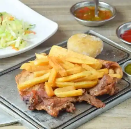 250 grs de churrasco con papa francesa y ensalada de la casa