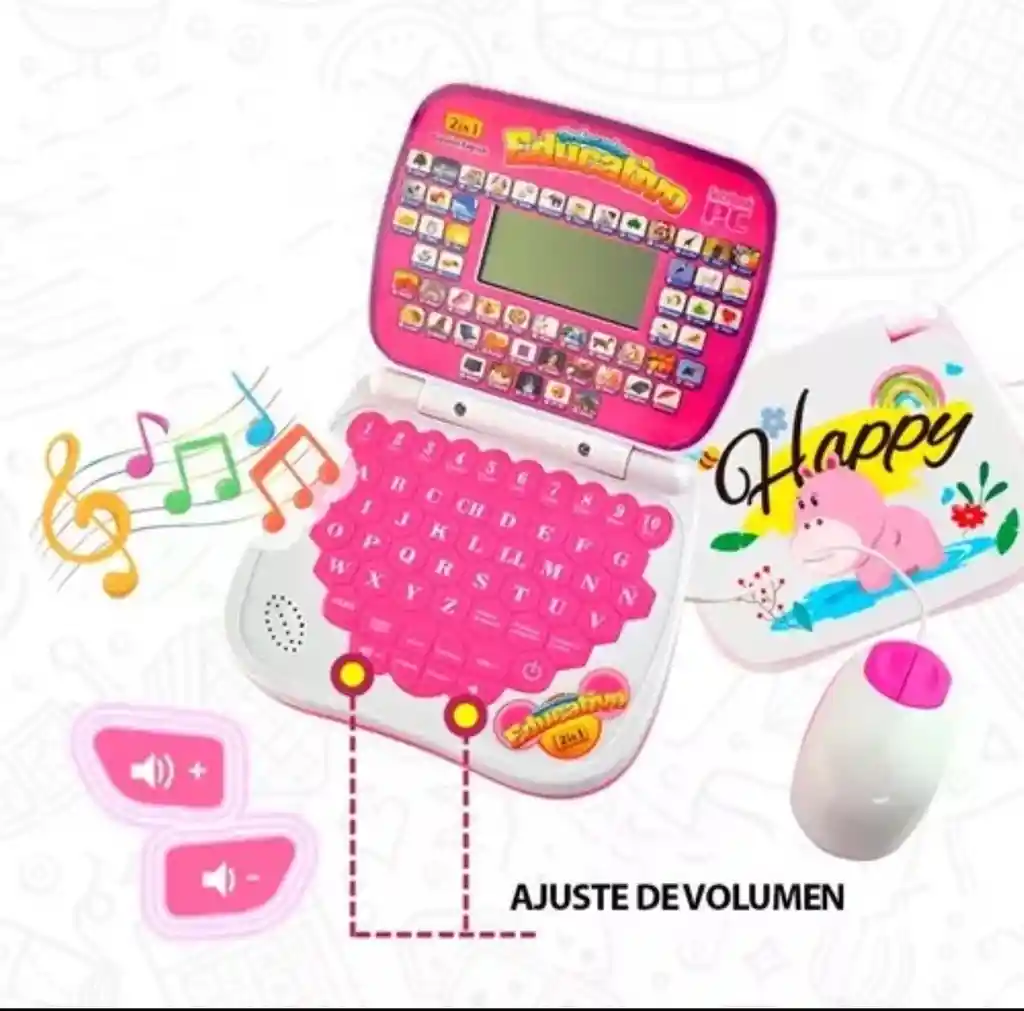Nombre del producto: Máquina de aprendizaje de educación temprana Color del producto: Rosa Edad aplicable: 3 años en adelante • Característica musical : El aprendizaje de inglés pequeño juguete portátil para niños tiene una característica musical que hace que el aprendizaje sea divertido y atractivo. • Áreas de aprendizaje múltiples : Este juguete portátil cubre una amplia gama de áreas de aprendizaje, incluyendo alfabeto, números, palabras, ortografía y matemáticas. • Compacto y portátil : Con su pequeño tamaño y diseño liviano, este juguete portátil es fácil de transportar Un computador didáctico interactivo para niñas en español e inglés es un dispositivo diseñado específicamente para ofrecer actividades educativas y entretenimiento adaptados a las necesidades y preferencias de las niñas en desarrollo, con la capacidad de cambiar entre los idiomas español e inglés. Aquí tienes una descripción detallada de sus características y funciones: Interfaz amigable para niños: La interfaz del computador está diseñada con colores y gráficos atractivos que son atractivos para las niñas, con controles intuitivos que son fáciles de entender y usar para su edad. Contenido educativo en español e inglés: Viene con una amplia variedad de aplicaciones, juegos y actividades educativas preinstaladas en ambos idiomas, diseñadas para enseñar habilidades básicas, como matemáticas, lectura, ciencias y habilidades motoras, tanto en español como en inglés Aplicaciones educativas y de entretenimiento adaptadas para niños: Ofrece una selección de aplicaciones educativas y juegos diseñados específicamente para fomentar el aprendizaje y el desarrollo cognitivo de las niñas, al mismo tiempo que proporciona entretenimiento relacionado con sus intereses, como actividades de princesas, moda, ciencia o arte. Teclado y pantalla adaptados para niños: El teclado y la pantalla táctil (si están presentes) están diseñados para adaptarse al tamaño y habilidades motoras de las niñas, lo que facilita su uso y ayuda en el desarrollo de habilidades informáticas básicas. Durabilidad y seguridad: Está construido con materiales duraderos y resistentes para resistir el uso frecuente y el manejo brusco por parte de las niñas. Además, generalmente está diseñado para ser resistente a derrames y golpes accidentales En resumen, un computador didáctico interactivo para niños en español e inglés es una herramienta educativa y de entretenimiento diseñada para fomentar el aprendizaje temprano y el desarrollo de habilidades en las niñas mientras se divierten. Con una combinación de contenido educativo preinstalado, controles parentales y diseño adaptado para niñas, estos dispositivos son una opción popular para padres que desean introducir a sus hijas en el mundo de la tecnología de manera segura, educativa y adaptada a sus intereses. Mide 15 cmx12 cm x 2.5 cm