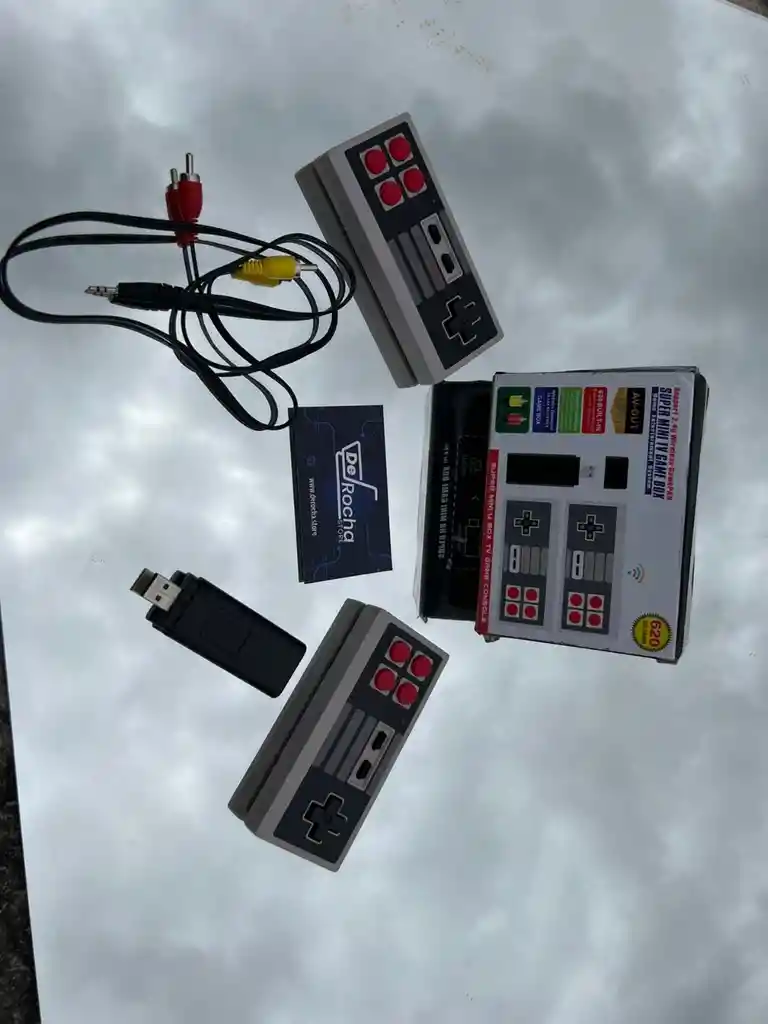 1.Mini caja de juegos 2.620 juegos clásicos Conexión de controlador inalámbrico 3.2.4G 4. Salida AV Salida de 5,1080 P para algunos juegos NES FC 6. Juega sin instalar controladores 7. Adecuado para dos pilas 1.5AAA 8. Transmisión de alta velocidad 9. Buena experiencia de juego Nombre del producto: consola de videojuegos Material: ABS Voltaje de entrada: ca 110V-240V/50-60Hz Salida: salida AV Color: Negro Tamaño: aproximadamente 17x12x3cm Contenido del paquete: 1 x caja de juegos 2 Gamepad (sin batería) 1 x Cable USB 1 x línea AV Solo el contenido del paquete anterior, otros artículos no están incluidos. Nota: La luz y las diferentes pantallas pueden hacer que el color del artículo en la imagen sea un poco diferente al real. El error de medición permitido es de +/- 1-3cm.