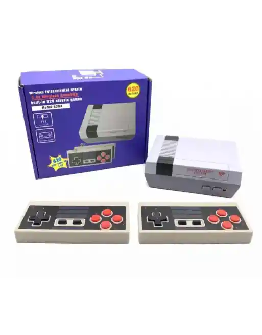 Sobre este articulo Recuerdos de la infancia. Esta consola de juegos con diversión y recuerdos de la infancia, son los buenos recuerdos de la generación de los 80 y 90. Esta máquina de juego seguramente 620 juegos clásicos. El controlador inalámbrico te permite jugar los juegos sin problemas. Apoya a dos personas para Game War, ¡es muy divertido! El paquete incluye: ? 1 consola de juegos, 2 controladores inalámbricos (joystick), 1 cable AV/cable de video para TV, 1 enchufe de alimentación de EE. UU., 1 caja de color. Instrucciones de uso: Esta consola de juegos retro está hecha para Entertament. Cuando enciendas la televisión, elige el modo de salida de TV (no el modo HD). Pon la batería dentro del controlador inalámbrico, conecta y reproduce. Esta consola de juegos preinstaló 620 juegos clásicos. Elige el juego que te gusta jugar Regalo perfecto. Este es un regalo impresionante para ti, tu hermano, hermana, hijo, amigos, etc. Este regalo se adapta perfectamente a un regalo significativo en cumpleaños, aniversario, Navidad, día de Acción de Gracias, día de San Valentín, fiesta, baile de graduación u otras ocasiones de regalo para niños, adultos ¿Servicio postventa? Estamos comprometidos a proporcionar la mejor consola de juegos y servicio para todos nuestros clientes. Y prometemos un servicio superior que incluye envío rápido, excelente comunicación y política de reembolso. Realmente apreciamos tu negocio. ¡Amamos a nuestros clientes y siempre estaremos aquí si nos necesita! Descripcion del producto La suya es la consola de juegos inalámbricos de diseño más reciente Su consola de juegos Características 2.4G Wifi controlador inalámbrico, siendo preinstalado 620 juegos clásicos. El controlador soporta 2.4G Wifi y una distancia efectiva es de 32.8 ft. Diseñamos atentamente su inalámbrico para proteger adecuadamente los ojos de los niños de ser dañados por el televisor. Un regalo impresionante para niños. 1. Acerca de los juegos: juego de acción 88 juegos de disparo, 94 juegos, juego deportivo, 43, juego de lucha, 46 juegos, juego de carreras, 25 juegos, rompecabezas Gam324, juegos 2AbouPack: 1 consola de juegos, 2 controladores inalámbricos (joystick), 1 cable AV para TV, 1 enchufe de alimentación estadounidense, 1 caja de color. 3Acerca del color: gris. Material: plástico y metal. Control. er: Inalámbrico (distancia máxima a 32.8 ft) Salida: Salida AV Tamaño del juego3.94 x 5.12 x 1.77 inchght: 15 onzas