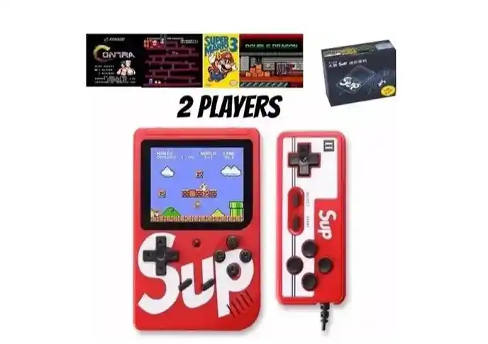 —————-MINI CONSOLA SUP 400 JUEGOS EN 1 ————————————————–JUEGOS CLASICOS—————————————————–INCLUYE CONTROL PLAYER II—————————-________________________________________________________________La mini consola SUP trae 400 juegos diferentes incluidos en un solo dispositivo la cual la puedes conectar al televisor gracias al cable de audio y video incluido.INCLUYE POR TIEMPO LIMITADO CONTROL PLAYER II:__________________________________________________________________Para que puedas jugar con tu amigo favorito al mismo tiempo como en las consolas antiguas de family y nintendo. ElCon 400 juegos Clásicos como: Super mario. pacman. contra. entre otros Clásicos.Trae una batería de carga de 1200 mha la cual le permite una duración en juego de hasta 4 horas continuas.Trae control de volumen lateral para poder escuchar a alto volumen el juego o bajarlo totalmente.Es la consola mini de juegos mas completa del mercado.los botones son suaves y responden bien los comandos.*COLORES_____________________________________________Disponible solo en color AMARILLO******ESPECIFICACIONES TÉCNICAS:________________________________________-Conexión de A/V para tv.-Compatible con cualquier televisor.-Parlante incorporado control de volumen.-Pantalla de 3? lcd-Dimensiones: 11.3 x 7.8 x 2.2 cm-Batería de 1200 mha tipo celular-Entrada de corriente 3.7v compatible con cualquier cargador de celular.-La puedes cargar con cualquier puerto de carga USB.*CONTENIDO DEL EMPAQUE:___