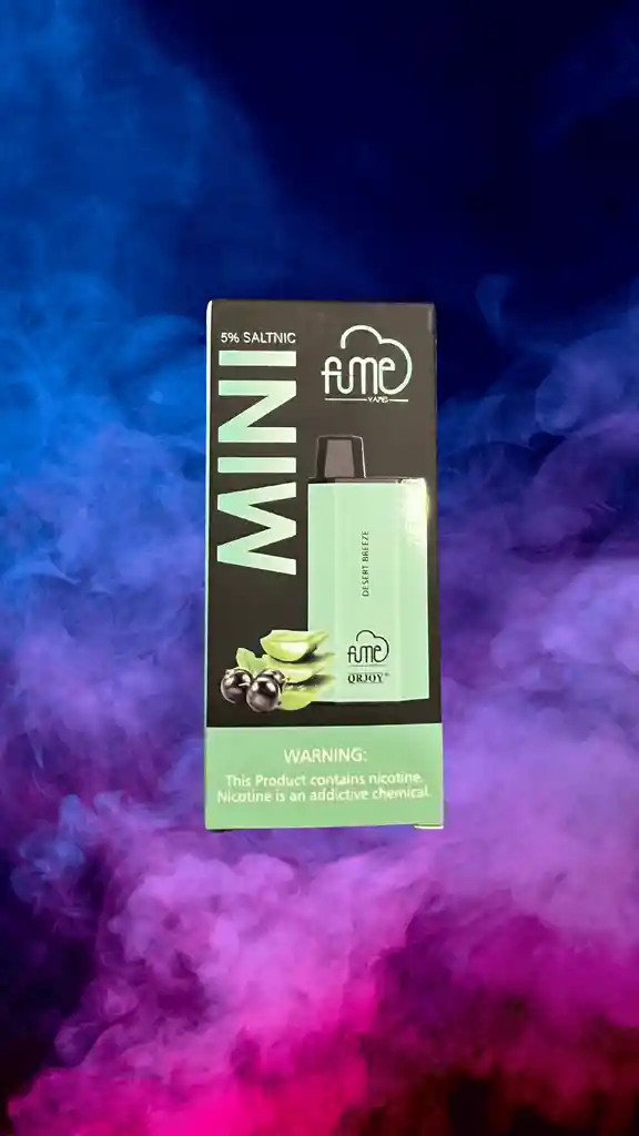 Fume Mini Desert Breeze 800 Puffs Original Este producto puede ser utilizado para productos que contienen nicotina o tabaco. El tabaco y la nicotina son nocivos para la salud. Ley 30 de 1986. Verificar condiciones de uso, indicaciones y contraindicaciones en la etiqueta. Prohibida la venta a menores de edad