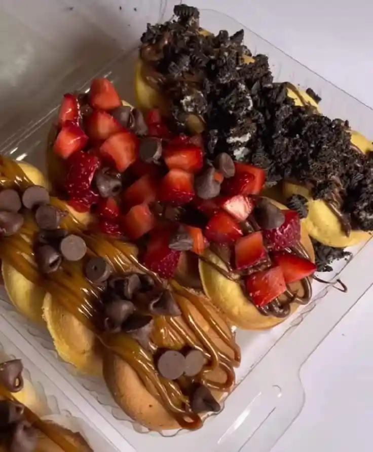 Mini donas le puede colocar la salsa que desee sea chocolate Arequipe Cereza Mora Lechería Con el. Topins que mejor te guste
