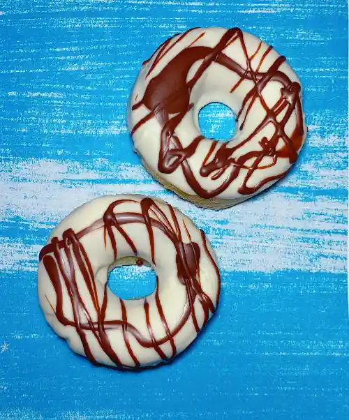 Mini Donas de chocolate horneadas, cubiertas de chocolate de leche y centro de arequipe, color variado
