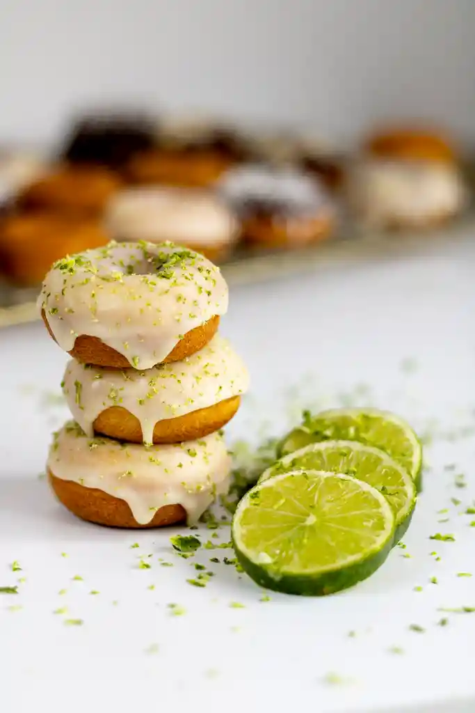 Vaso de 5 mini donas sabor a limón, con ganache de chocolate blanco y topping de rayadura de limón