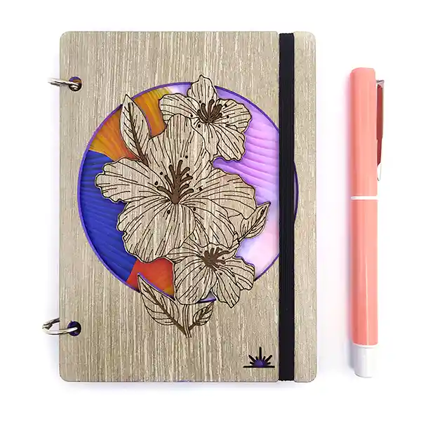 Libreta de Bolsillo 11 x 15 cm la Opción Ideal Para Llevar Tus Ideas Siempre Contigo, Asegúralas Con el Caucho. Tapas Duras 3 mm Espesor, Acabados Vetas de Madera. Argollas Que Puedes Abrir Para Reutilizar Las Tapas. Incluye Lapicero Tinta Negra.