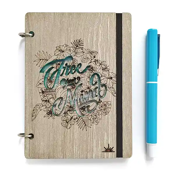 Libreta de Bolsillo 11 x 15 cm la Opción Ideal Para Llevar Tus Ideas Siempre Contigo, Asegúralas Con el Caucho. Tapas Duras 3 mm Espesor, Acabados Vetas de Madera. Argollas Que Puedes Abrir Para Reutilizar Las Tapas. Incluye Lapicero Tinta Negra.