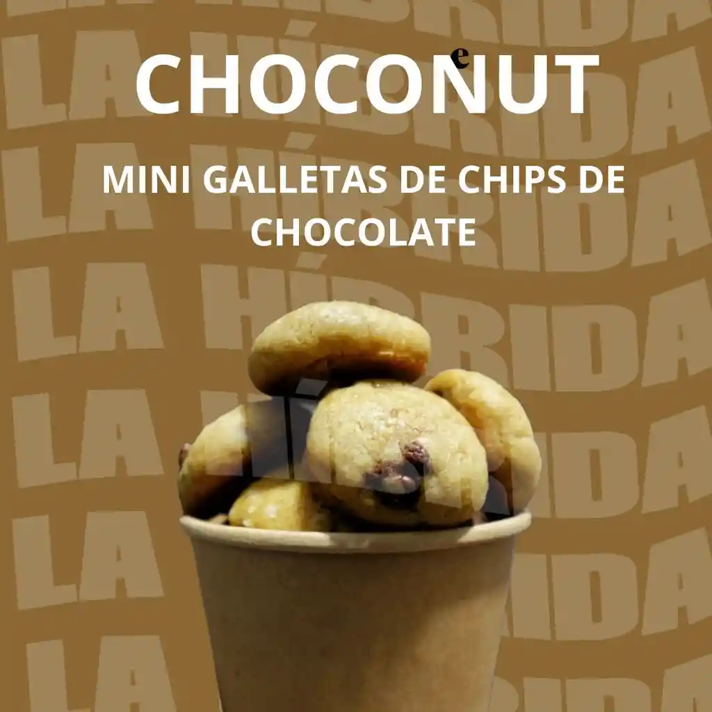 Galletas de Chips de chocolate. Vienen acompañadas de un recipiente de chocolate dulce, para sumergir estas deliciosas mini galletas.