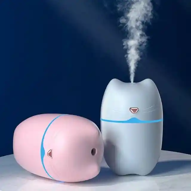 El Mini Humidificador de aire con Orejas de Gato es un dispositivo compacto y adorable diseñado para mejorar la calidad del aire en espacios como el coche, la oficina o el dormitorio. Este humidificador utiliza tecnología ultrasónica para convertir el agua en una fina niebla de vapor, humidificando el ambiente y aliviando la sequedad. Este humidificador cuenta con un diseño encantador que incluye orejas de gato en la parte superior, lo que le da un aspecto lúdico y atractivo. Es portátil y fácil de transportar, por lo que puedes llevarlo contigo a donde quiera que vayas. Además de su función principal de humidificación, este mini humidificador también puede actuar como difusor de aromaterapia. Puedes agregar unas gotas de tu aceite esencial favorito en el agua y el dispositivo dispersará un aroma relajante y refrescante en el aire. Es muy fácil de usar. Solo necesitas llenar el depósito de agua, conectarlo a una fuente de alimentación USB y encenderlo. También cuenta con funciones de apagado automático cuando se queda sin agua, lo que garantiza la seguridad y evita que se dañe.