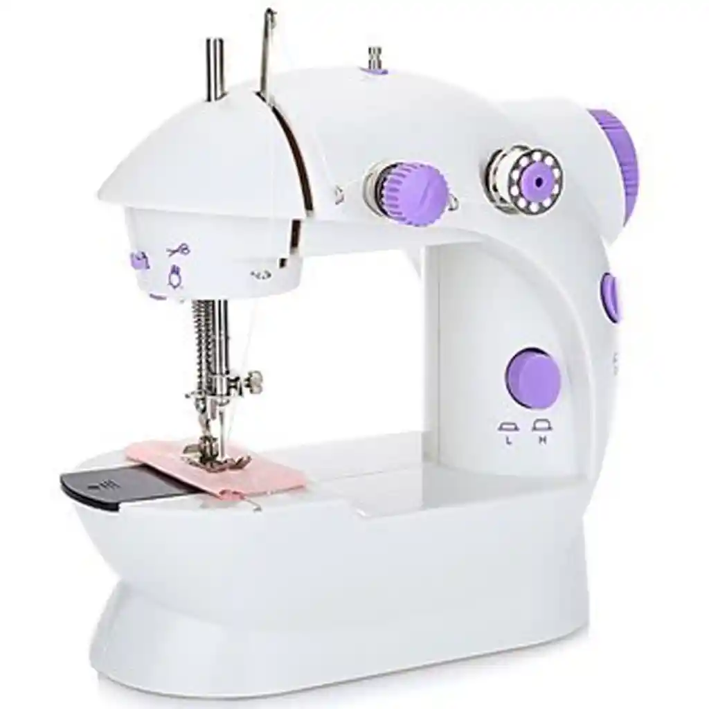 Mini Máquina De Coser Hilo Automático Doble Velocidad Con Luz-Púrpura Esta pequeña maquina ofrece puntada de hilo doble costura, limpio y recto. Cuerda automática del hilo de la bobina y el hilo superior, muy fácil de reemplazar. La velocidad puede ser conmutable: baja o alta, cuenta con una luz, lo que es muy conveniente para enhebrar la aguja, viene con un pedal, puede elegir el interruptor de mano o el pedal de pie para controlarla, es ligera, compacta y portátil, puede ahorrar energía, espacio y tiempo, puede ser alimentado por adaptador de corriente o con pilas (no incluidas), es ideal para artesanos, aficionados al bricolaje en casa o para realizar todo tipo de costuras pequeñas y reparaciones sencillas. CARACTERÍSTICAS Material Plastico y Acero 1 máquina de coser 1 de Pedal de pie 1 adaptador 1 bolsa de accesorios 1 manual de usuario (Inglés) Funciona con conexión a toma corriente o con Bacterias (NO INCLUYE PILAS) Tamaño del artículo: 17. 5 * 9 * 22 cm / 6.89 * 3.54 * 8,66 en Peso: 900 g Color: Blanco Respaldo y garantía en todos nuestros artículos ventas por mayor y al detal.