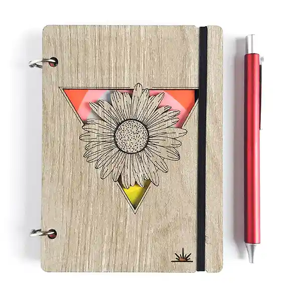 Libreta de Bolsillo 11 x 15 cm la Opción Ideal Para Llevar Tus Ideas Siempre Contigo, Asegúralas Con el Caucho. Tapas Duras 3 mm Espesor, Acabados Vetas de Madera. Argollas Que Puedes Abrir Para Reutilizar Las Tapas. Incluye Lapicero Tinta Negra.