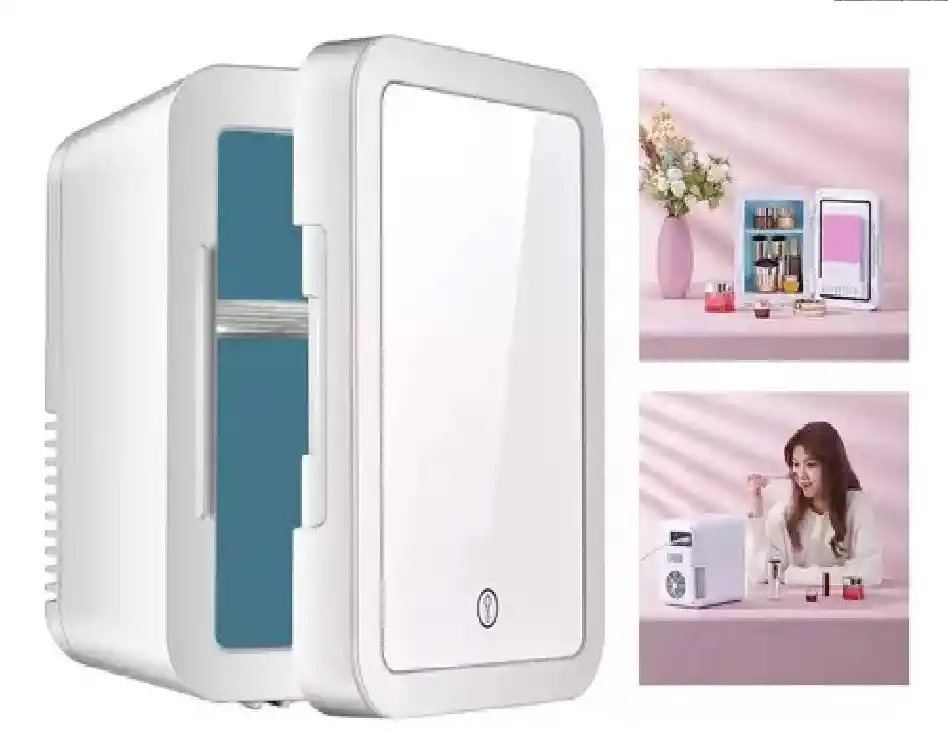 Mini nevera para maquillaje con espejo integrado: un accesorio indispensable para mantener tus productos de belleza frescos y organizados. Su diseño compacto y moderno se adapta perfectamente a cualquier espacio, mientras que el espejo iluminado con luz LED asegura una aplicación precisa del maquillaje en cualquier momento del día. Ideal para preservar cremas, serums y mascarillas a la temperatura óptima, garantizando su efectividad por más tiempo. Funciona de manera silenciosa, es portátil y fácil de usar, convirtiéndola en el complemento perfecto para tu rutina de cuidado personal.