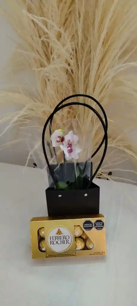 mini orquídea decorada mas chocolates ferrero 8 decorada para regalo