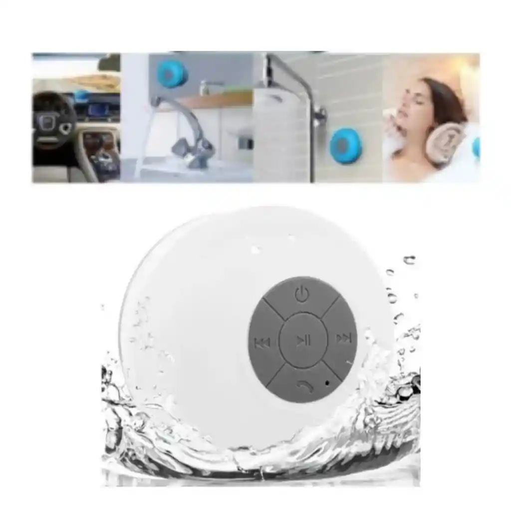 1 Mini Altavoz Bluetooth portátil, impermeable, inalámbrico, manos libres, altavoces, para duchas, baño, piscina, coche, Altavoz bluetooth 3 Watios de potencia. Bluetooth 3.0, compatible con cualquier dispositivo. Batería de litio de 400 mAh con una duración de 5 horas y 4 horas de carga completa. Micrófono incorporado para disfrutar de manos libres. 10 metros de alcance. Dimensiones: 8.8 centímetros de diámetro y 5.5 centímetros de grosor. Peso: 105 gramos. Característica: 1. Fácil acceso a Manos libres hablar/subir volumen/bajar volumen/avance rápido (saltar)/retroceder/Pausar/reproducir/botones de encendido 2. Conectividad inalámbrica de audio bluetooth 3,0 de alta definición con streaming continuo y 6 horas de reproducción 3.IP4 impermeable, micrófono incorporado y batería recargable, diseño de taza de succión para una fácil fijación a la pared o a cualquier superficie plana. 5. Altavoz resistente al agua y micrófono integrado para uso en exteriores e interiores 6. Fácil acceso a Manos libres hablar, seguro y práctico cuando conduces o te duchas. 7. Botones convenientes para control de música y llamadas mientras está en la ducha, en la piscina o en el coche.