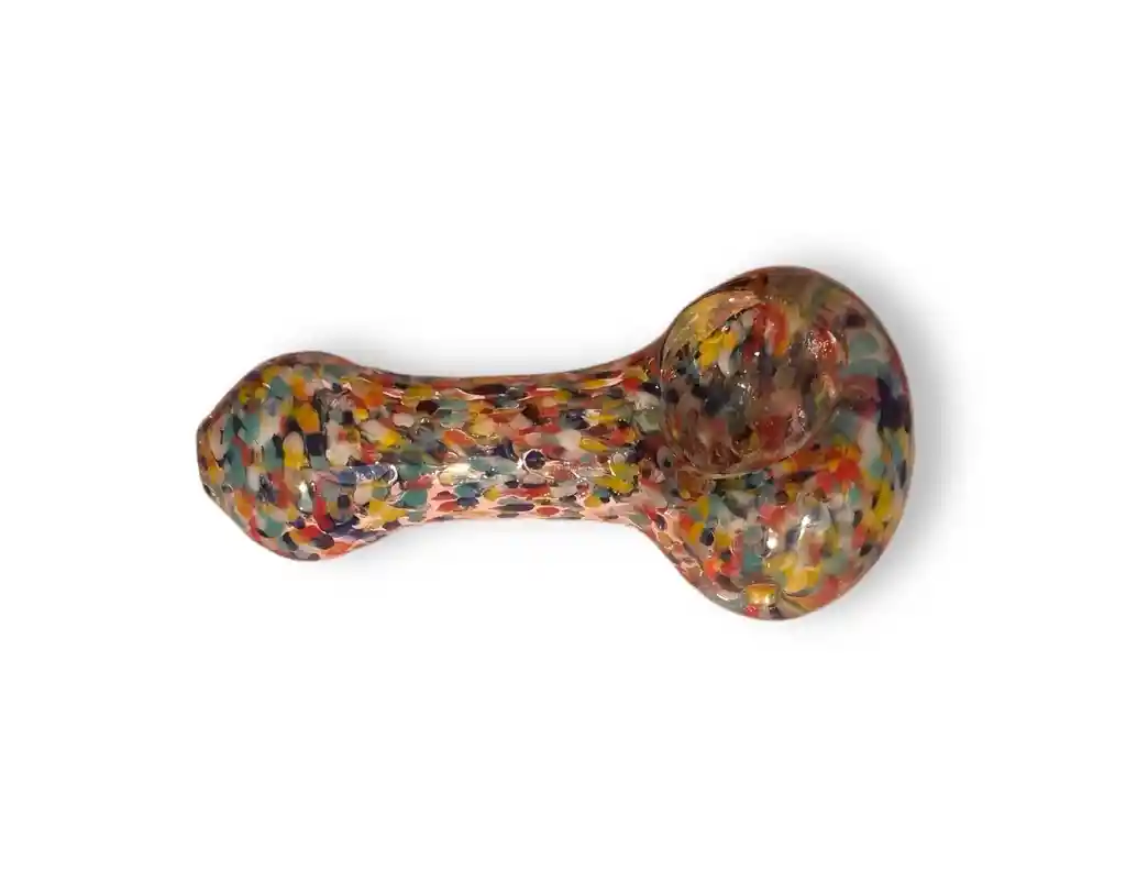 Mini pipa de vidrio con puntos de colores brillantes. Su tamaño compacto la hace perfecta para llevarla a todas partes Tamaño: 6.5CM x 4CM x 4CM