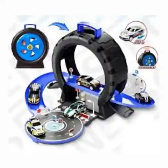 . El producto en la imagen es un juguete que se pliega en forma de rueda/neumático para un fácil almacenamiento y portabilidad. Nombre de la serie: Police Scenes Series Marca: Hongjiabo Contenido: El paquete incluye 30 piezas, que incluyen coches de policía de fundición a presión, piezas de pista, señales y accesorios de escena. Características principales: Portátil: Se pliega en una carcasa compacta con asa, diseñada para parecerse a un neumático. Función "Pull back": Los coches incluidos son de tipo "pull back" (tire hacia atrás para que avancen). Edad recomendada: Adecuado para niños de 3 años en adelante. DISPONIBILIDAD DE CANTIDAD SEGUN TIENDA.