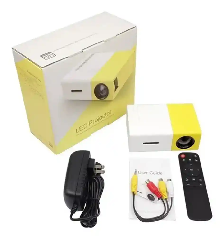Mini Proyector Led Portatil Yg300 Lcd Tft 320-240 Pixeles Reproductor de vídeo de formato completo: MP4, RMVB, AVI, RM, MKV, etc. Soporte multimedia (música, pic, vídeo, txt). Características: Tecnologia de imagen LCD TFT Contraste 800:1 Resolución nativa 320-240 pixeles Resolución de soporte 1920-1080 pixeles Luz LED Tiempo 30000 horas Modo de operación: manual de operación Distancia de proyección 15-2M Tamaño de proyección 24-60 pulgadas Relación de proyección 1,6:1 Relación de aspecto 4.3 Consumo 10-24w 23 idiomas Proyector: 12,7 cm ancho x 8,5cm largo x 4,5cm alto Control: 3,5cm ancho x 14cm largo Cable: 22cm de largo Caja empaque: 19,5cm ancho x 18cm largo x 8,5cm alto 1 proyector 1 control 1 adaptador a corriente 1 cable av 1 manual de uso 1 caja de empaque Respaldo y garantías en todos nuestros artículos ventas por mayor y al detal.