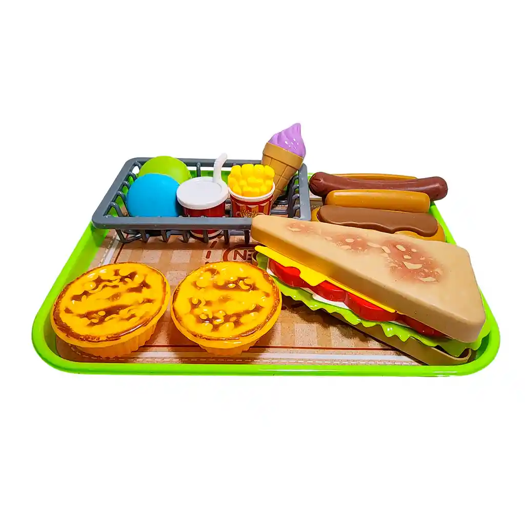 ¡Abre tu propio Mini Restaurante de Comida Rápida y conviértete en el chef y cajero estrella con este increíble set de juego! Este completísimo kit tiene todo lo que necesitas para servir los platillos más deliciosos, incluyendo una colorida caja registradora con dinero de juguete y tarjeta de crédito, una bandeja para servir, y una increíble variedad de comidas como sándwiches, perros calientes, papitas, helados y postres. Tu pequeño podrá tomar órdenes, calcular la cuenta y manejar el dinero, desarrollando su imaginación, habilidades sociales y conceptos matemáticos básicos de la manera más divertida posible. Desde hacer las compras con la canasta hasta servir un menú completo, este set es la receta perfecta para horas de juego creativo y sabrosa diversión. Ficha Técnica: Material: Plástico ABS Dimensión del empaque: 35 cm x 22 cm x 3 cm Edad recomendada + 3 Años Referencia: 623-208 Certificado de conformidad: CS-LCO-13233-2021S2/432 ** _Para defectos de fábrica o retractos: \_Por favor revise el producto apenas lo reciba y antes de usarlo. No aplican ley de retracto o defectos de fábrica luego de usar el producto. Se manejan máximo 5 días para reportar defectos de fábrica (por ejemplo, producto funciona mal, piezas faltantes, rotas, etc). Para hacer efectiva la devolución el producto debe devolverse con el empaque original, el cual debe estar en buen estado, incluir todos los documentos y las partes completas y sin daños.