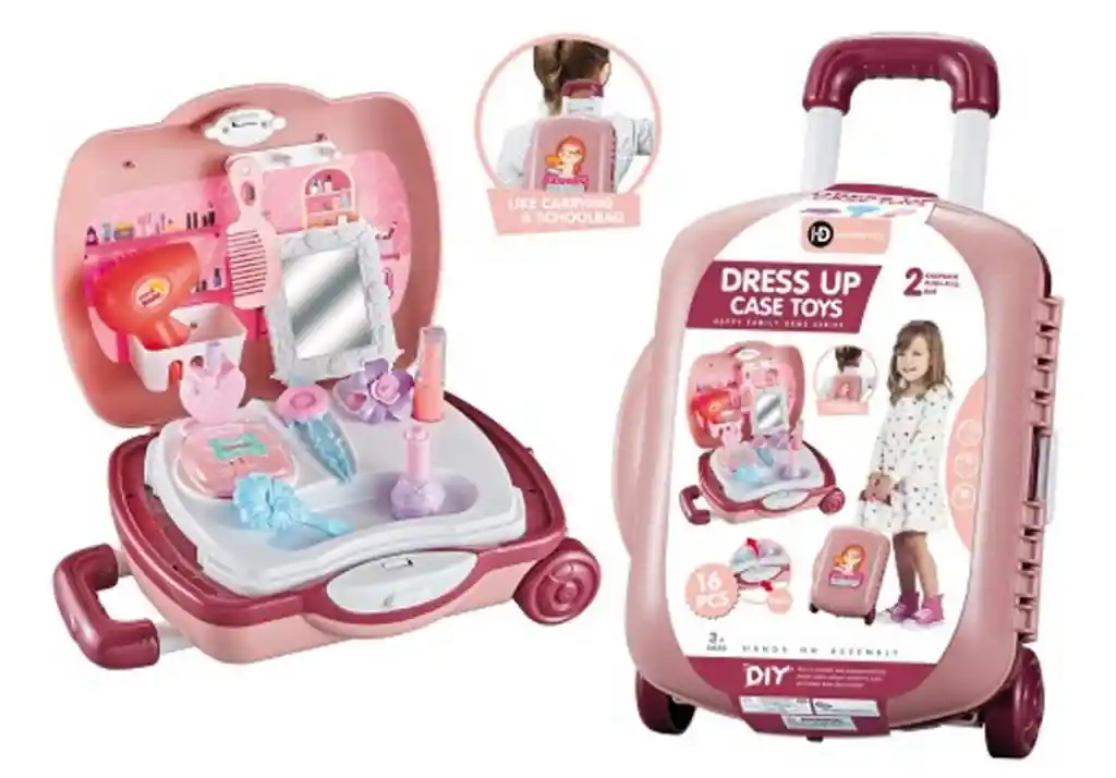 Mini Set Maleta Rodachines Tocador Maquillaje Niña Rosado Despierta la estilista que lleva dentro tu pequeña! Con este completo maletín de belleza, las niñas podrán crear sus propios looks y divertirse imitando a sus mamás o a sus personajes favoritos. El juego incluye una variedad de accesorios realistas, como un espejo, un secador de pelo, un cepillo, esmaltes de uñas, un teléfono y mucho más. El maletín cuenta con un diseño adorable y práctico, con ruedas para que las niñas puedan llevarlo a donde quieran. Este juguete fomenta el juego simbólico, la creatividad y la imaginación, además de ayudar a desarrollar las habilidades sociales y la coordinación mano-ojo. ¡El regalo perfecto para cualquier pequeña fashionista!