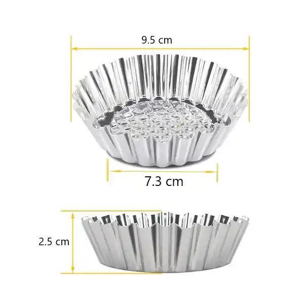 MINI TARTALETA 9.5 x 7.3 x 2.5 molde para magdalenas en tamaños pequeños es ideal para hornear pasteles, tartas, cupcakes, galletas, pudín, adoquines, quiches, chocolates, galletas, tartas de frutas y todo tipo de alimentos individuales. acero inoxidable de grado alimenticio, que es grueso, resistente y firme y no se deforma fácilmente durante el uso.