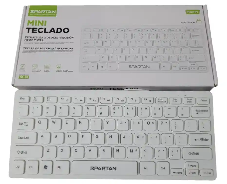 Mini Teclado Spartan TO-01, Teclado Para Pc CALIDAD MAGRA FIABLE Y DURADERA Es un teclado súper elegante, súper duradero y único. Desde el momento en que lo uses, sentirás la superioridad de este teclado. Rendimiento, comodidad y durabilidad inigualables. CARACTERÍSTICAS: •Mini -estructura de contracción ultrafina •Teclado de chocolate •Nunca te quedes atascado •Nuevo plástico ABS, teclado antibacteriano y duradero. •10 millones de veces •Teclado impermeable, sin sonido, diseño elegante •Es un sistema de teclas preciso que se mueve rápidamente cuando se toca Se siente más cómodo con una llave de chocolate. FLEXIBLE Y PORTÁTIL SISTEMA MÚLTIPLE CONPATIBILIDAD CÓMODO SENSACIÓN ASPECTOS AMBIENTALES PERTINENTES MATERIAL AMIGABLE Contenido del producto: x1 Mini teclado Spartan x1 caja sellada