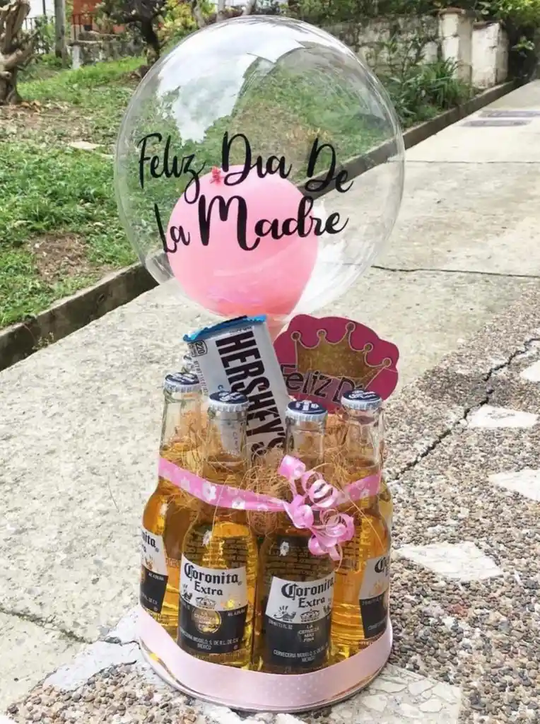 CONTIENE 6 CORONITAS Y UNA CORONA, CHOCOLATE HERSHEYS, PELO DE COCO DECORATIVO, GLOBO BURBUJA PERSONALIZADO, BASE EN CARTÓN PRENSADO COLOR METALICO O NEGRO