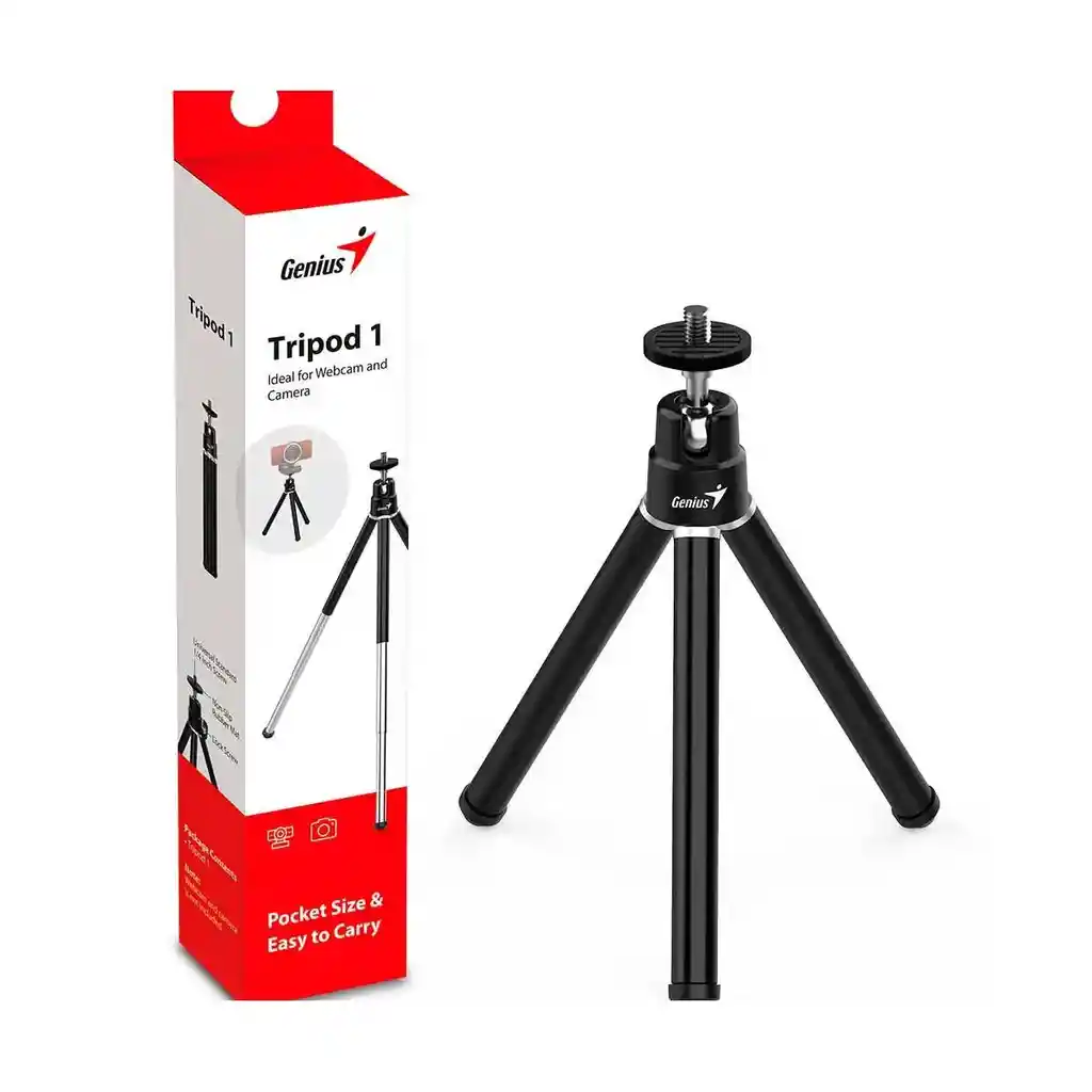 Trípode universal para cámara web, de altura ajustable desde 6,2 a 9,9pulgadas para obtener el ángulo y la altura deseada. Cuenta con soportede 3 patas metálicas y mini rótula en circulo para generar una rotaciónde 360 grados e inclinación de 90 grados. Tamaño pequeño y peso ligero, fácil para viajar.